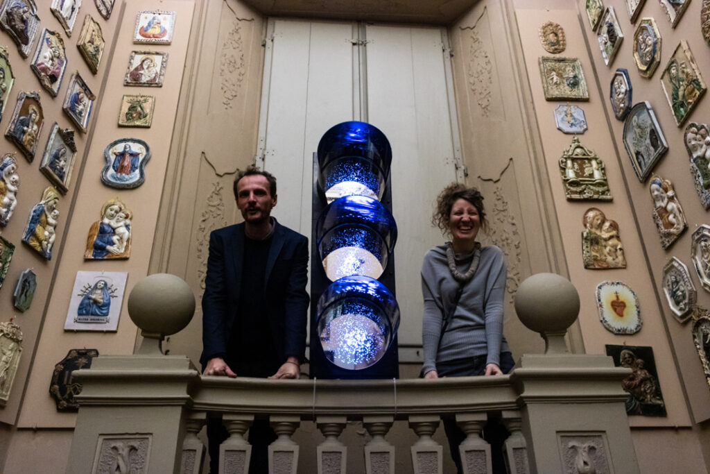 Gli Antonello Ghezzi, vincitori della quarta edizione di Incredibol – L’innovazione creativa di Bologna sono stati assegnatari della Palazzina Liberty per le loro collaborazioni tra arte e impresa. Nel corso degli anni hanno aperto lo spazio al pubblico con innumerevoli mostre di arte contemporanea ed iniziative di respiro internazionale. Oggi dedicano queste due opere agli abitanti di Bologna perché si sentano parte dell’Universo e possano avere il coraggio di volare.