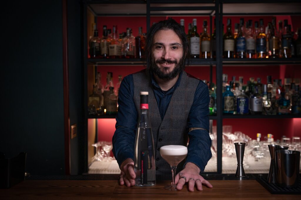 Questa si unisce perfettamente a una foam, una spuma di liquore al lampone homemade: scomponendo i due ingredienti e lavorando con una stratificazione, si permette agli ingredienti di unirsi man mano che la foam rilascia verso il basso i propri sentori di lampone. Ma, al centro di tutto, la Grappa di Traminer Pilzer, realizzata con le pregiate vinacce di uve Traminer coltivate in Trentino, di cui Bruno Pilzer segue con attenzione e tecnica la fermentazione.