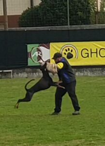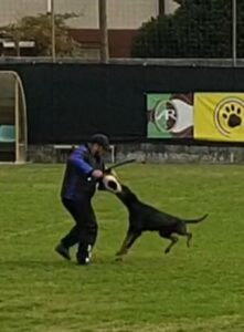 Ogni dobermann, accompagnato da uno specifico conduttore che ne determina il binomio ha dimostrato la propria capacità regalando agli occhi dei presenti momenti di pura emozione e divertimento attraverso l’esecuzione di comandi, apparentemente di facile applicazione, oppure di risposte misurate del cane innanzi a stimoli improvvisi costruiti dal figurante.
