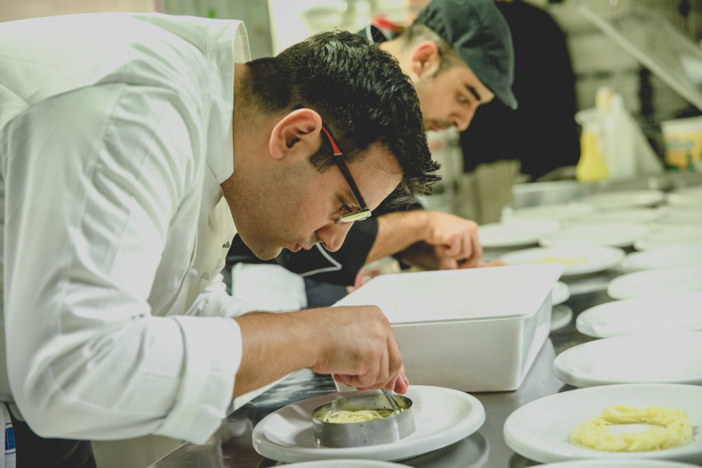 La capacità di alternare sapientemente mare e terra deriva, in buona parte, dalla sua crescita professionale maturata all’ombra del Vesuvio, ma anche da quell’apertura propria dei talenti che hanno avuto il merito e l’opportunità di apprendere l’arte gastronomica in brigate di altissimo livello.
